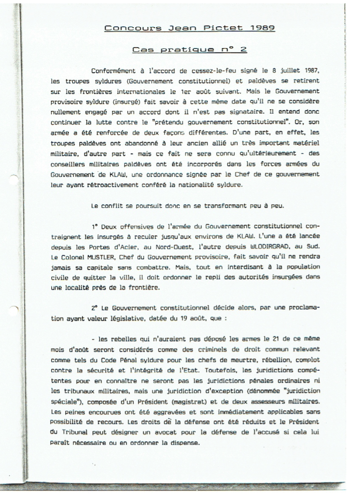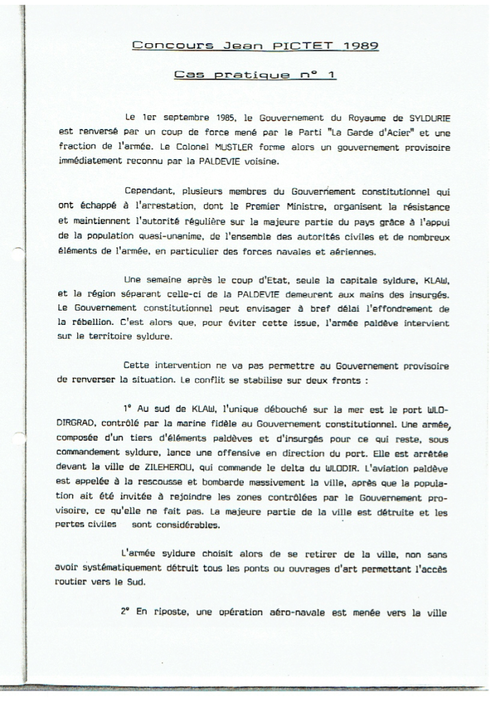 Pour inaugurer ce blog, le cas pratique de la première édition du Concours, en février 1989. Les quatre équipes présentes avaient préparé la première partie pendant huit heures, avant de présenter leurs conclusions devant un des deux jurys.