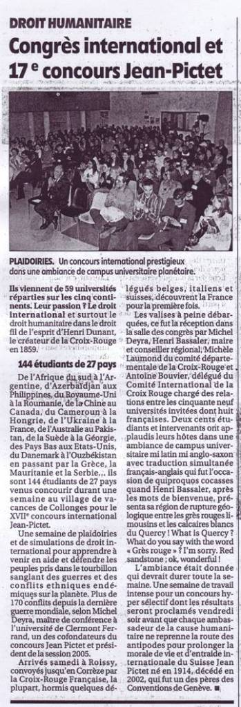 En 2005, pour la première fois, le Concours regroupait des francophones et des anglophones en même temps – en dehors des finales de 2000 à 2004. Cet article de La Montagne décrit bien les quiproquos cocasses qui en découlèrent…